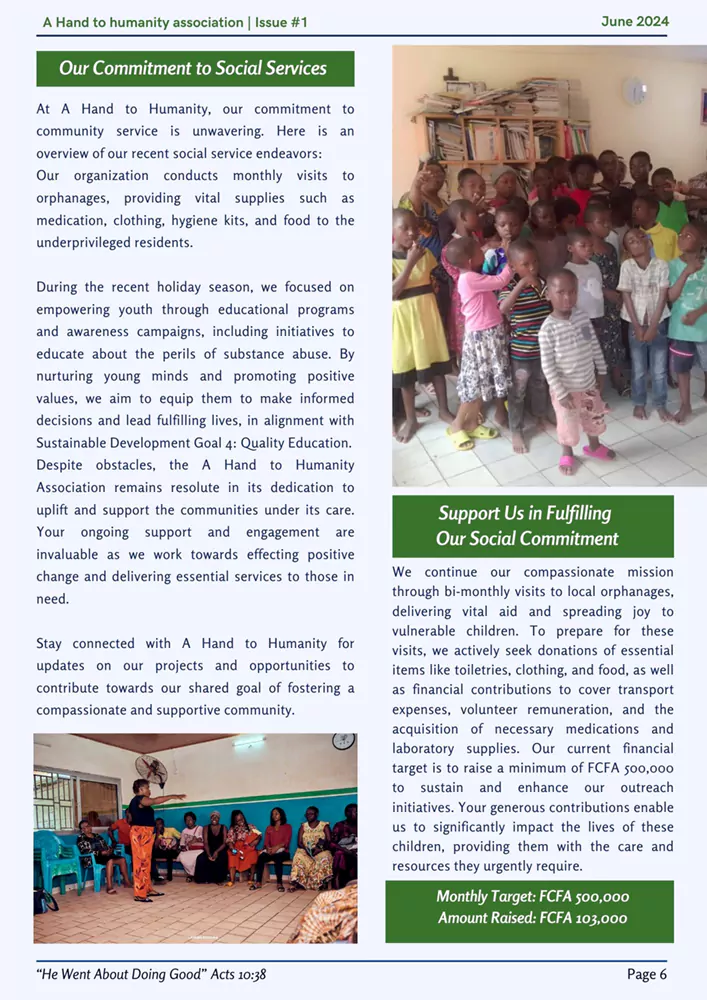 Established in Yaoundé, Cameroon in 2020, A Hand to Humanity Association was created to support the local community. By focusing on overall well-being and providing social assistance with successful outcomes, there has been a growing call for services to be extended to communities abroad such as Canada, the US, Ghana, and Kenya. With a commitment to healing and empowerment, the association has become a symbol of hope and health for individuals both near and far.