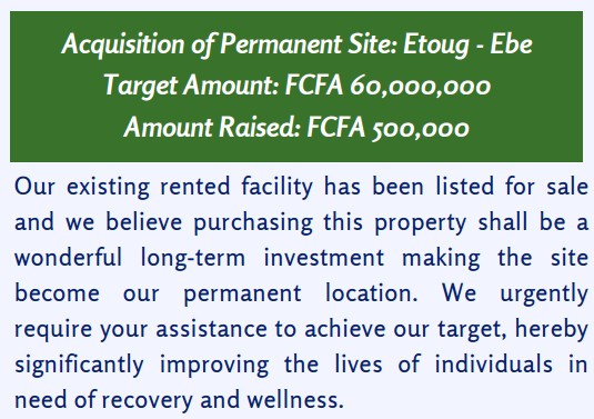As a non-profit organization operating in Cameroon and planning to launch in three other countries, we are dedicated to social responsibility, supporting the less privileged through holistic well-being services. We specialize in spiritual healing on a non-denominational basis, physical healing through conventional and herbal medicine, mental and psychosocial support through developing population-level policy solutions to rehabilitate and support the reinsertion of victims of prostitution, substance abuse, sexual abuse, and gender-based-violence into society. With a beneficiary satisfaction rate of over 95% in the communities we serve, we strive to exceed expectations in our daily operations for the betterment of humanity.