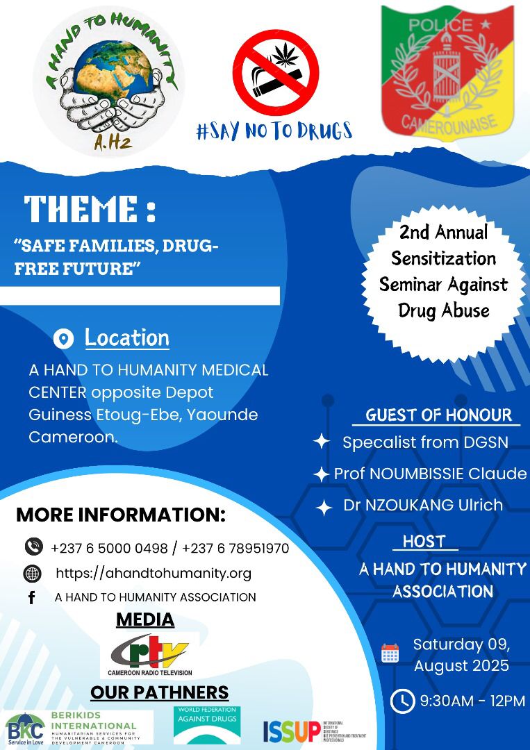 This crucial community event is dedicated to the theme, “Safe Families, Drug-Free Future,” and aims to educate and empower the Yaoundé community with the knowledge to combat the dangers of substance abuse. It represents a significant collaborative effort, held in partnership with the Cameroonian Police and featuring distinguished guests of honour, including a specialist from the DGSN, Professor Noumbissie Claude, and Dr. Nzoukong Ulrich.